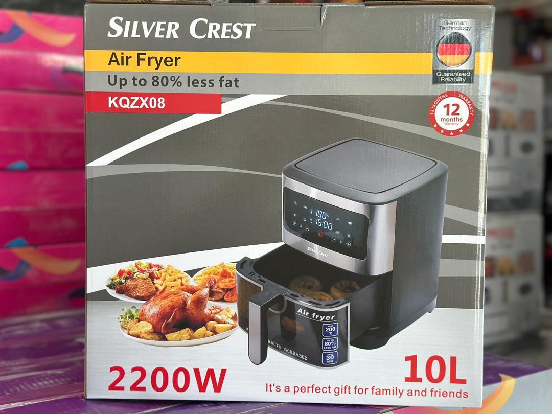 سرخ کن رژیمی بدون روغن برندسیلورکرست ۲۲۰۰وات۱۰لیتر کنترل پنل لمسی دیجیتال الارم هشدار چراغ داخل محفظه برنامه پخت مرغ سیب زمینی کیک بادمجان،استیک،میگو،ماهی و.... دیگ لایه نچسب گرانیتی توری کف دیگ قابلیت تنظیم درجه حرارت قابلیت سرخ کردن هرگونه موادغذایی جنس بدنه استیل و پلاستیک قابلیت پخت کیک کیفیت عالی زیبنده هرخانه