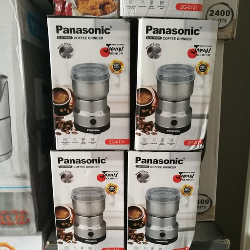 آسیاب برقی چهار تیغ پاناسونیک وسیله ای پر کاربرد در آشپزخانه برای خرد و پودر کردن خشکبار برنج و قهوه و سبزی و... جنس بدنه استیل جنس تیغه ها استیل ضد زنگ میباشد