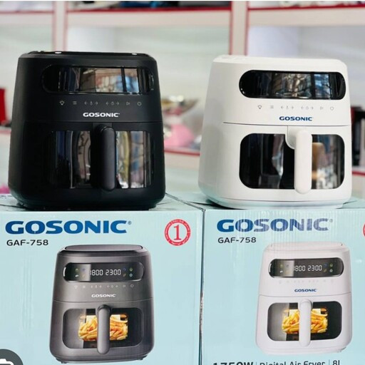 سرخ کن بدون روغن گوسونیک Gaf-758 یکی دیگر از محصولات خاص و بینظیر گوسونیک است. این دستگاه دارای بدنهای مقاوم و محکم از جنس پلاستیک فشرده است که در ۲ رنگ سفید و مشکی و مخزن شیشهای شفاف طراحی شده اند. به کمک درب شیشهای و لامپ داخل دستگاه به آسانی میتوانید غذا را در هنگام پخت مشاهده کنید. پنل کنترلی دارای ۸ برنامه از پیش تعیین شده است و به صورت کاملا لمسی، امکان دسترسی را آسان مینماید. مخزن این سرخ کن دارای گنجایش ۸ لیتر میباشد که به کمک آن میتوانید یک وعده غذایی ۱۴-۱۶ نفره را آماده کنید. دستگیره و بدنهی سرخ کن گوسونیک Gaf-758 دارای خاصیت عایق حرارتی بوده و از آسیب احتمالی در حین روشن بودن جلوگیری مینمایند. قطعات مختلف در این دستگاه قابل جدا شدن بوده و میتوانید پس از هر بار استفاده آنها را بشویید. پایههای ضد لغزش از لیز خوردن این سرخ کن بر روی سطوح سرامیکی جلوگیری میکنند